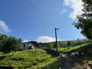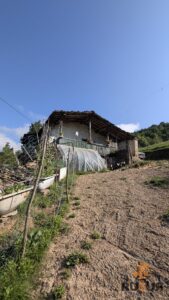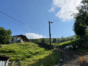 La cabaña, con dos plantas de 117 m² cada una, conserva su esencia tradicional, incluyendo el característico tejado de lastra, y aunque necesita rehabilitación, su estado es razonablemente bueno. Además, cuenta con suministro de agua, electricidad y acceso cómodo, lo que facilita cualquier proyecto de restauración o adaptación como segunda residencia, alojamiento rural o refugio personal.
